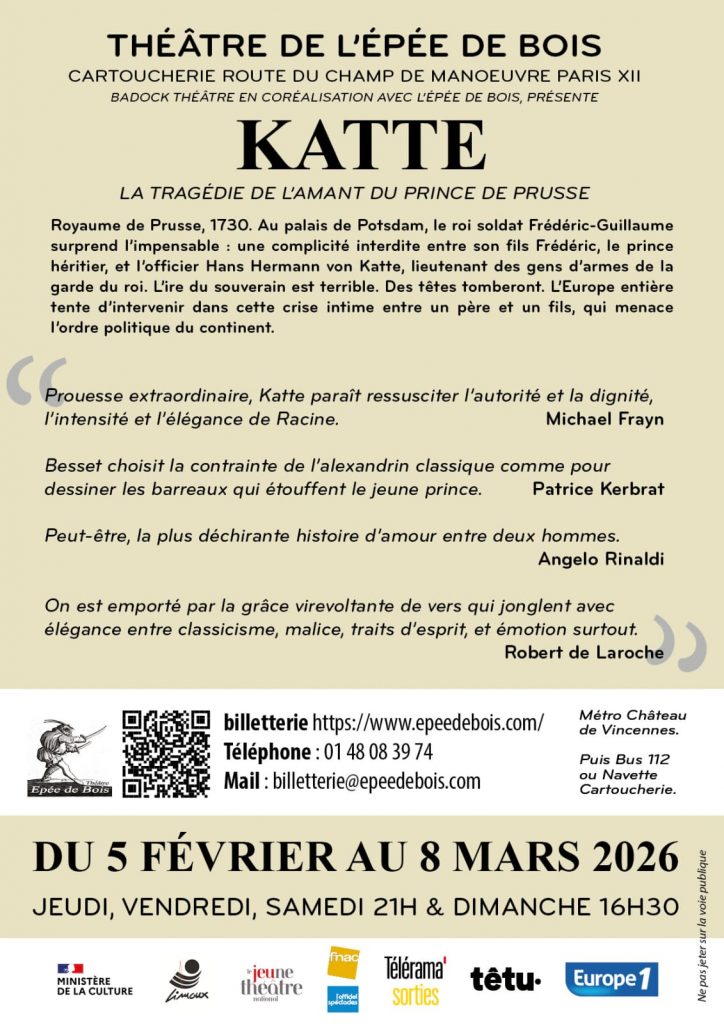Royaume de Prusse, 1730. Au palais de Potsdam, le roi soldat Frédéric-Guillaume surprend l’impensable  : une complicité interdite entre son fils Frédéric, le prince héritier, et l’officier Hans Hermann von Katte, lieutenant des gens d’armes de la garde du roi. L’ire du souverain est terrible. Des têtes tomberont. L’Europe entière tente d’intervenir dans cette crise intime entre un père et un fils, qui menace l’ordre politique du continent.
